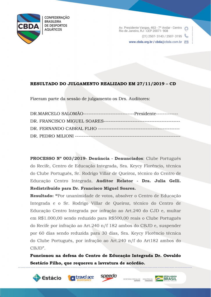 Resultado do Julgamento realizado em 27/11/2019